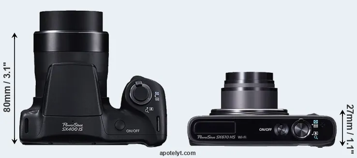 | 1. | Canon SX400 | 104 mm | 69 mm | 80 mm | 313 g | 190 | n | Jul 2014 | US$ 249 | ebay.com | |
