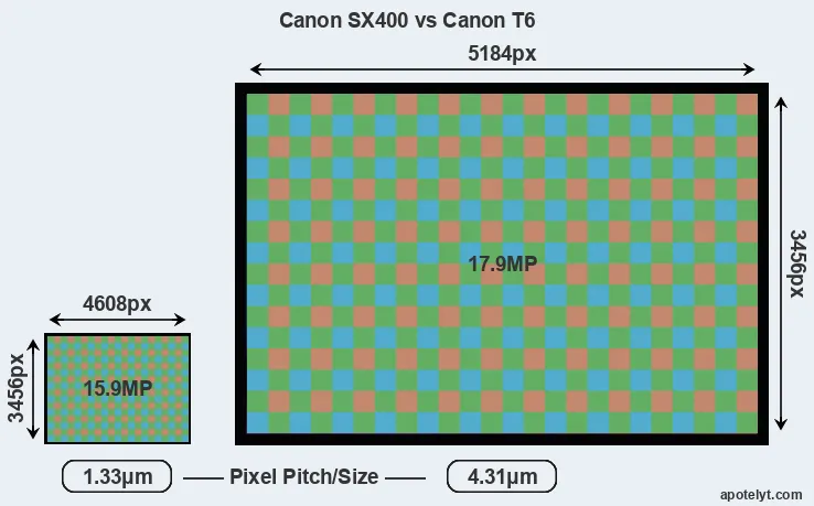 | Sensor Specs | Canon SX400 | Canon T6 |