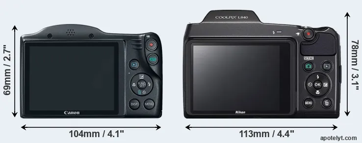 | Screen Specs | Canon SX400 | Nikon L840 |