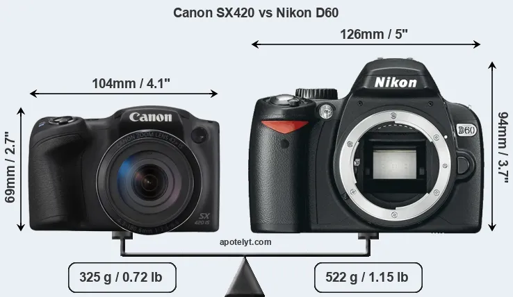 | Body Specs | Canon SX420 | Nikon D60 |