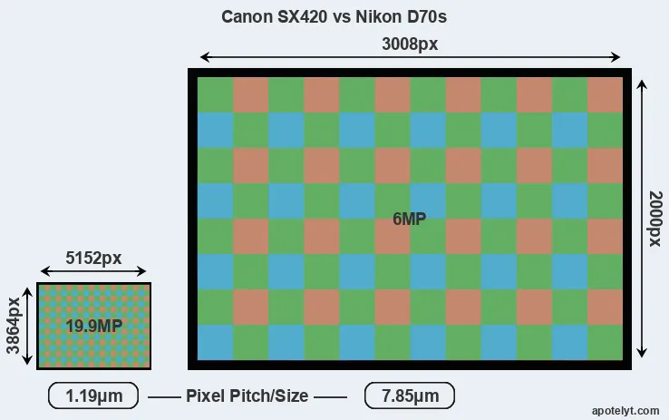 | Sensor Specs | Canon SX420 | Nikon D70s |
