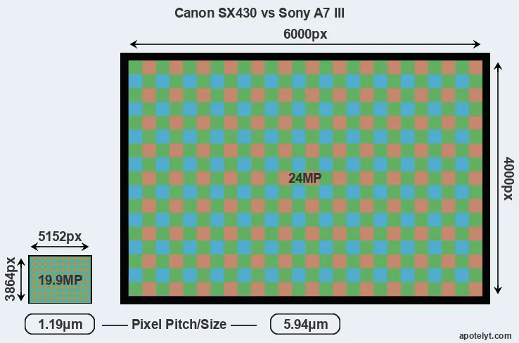 | Sensor Specs | Canon SX430 | Sony A7 III |