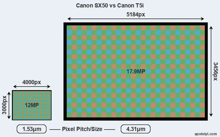 | Sensor Specs | Canon SX50 | Canon T5i |