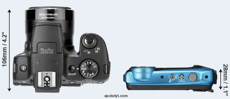 Size Canon SX50 vs Fujifilm XP130