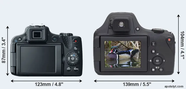| 1. | Canon SX50 | 123 mm | 87 mm | 106 mm | 595 g | 315 | n | Sep 2012 | US$ 429 | ebay.com | |