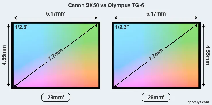 | Sensor Specs | Canon SX50 | Olympus TG-6 |