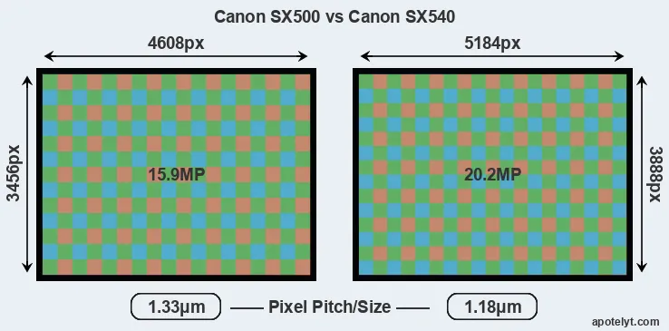 | Sensor Specs | Canon SX500 | Canon SX540 |