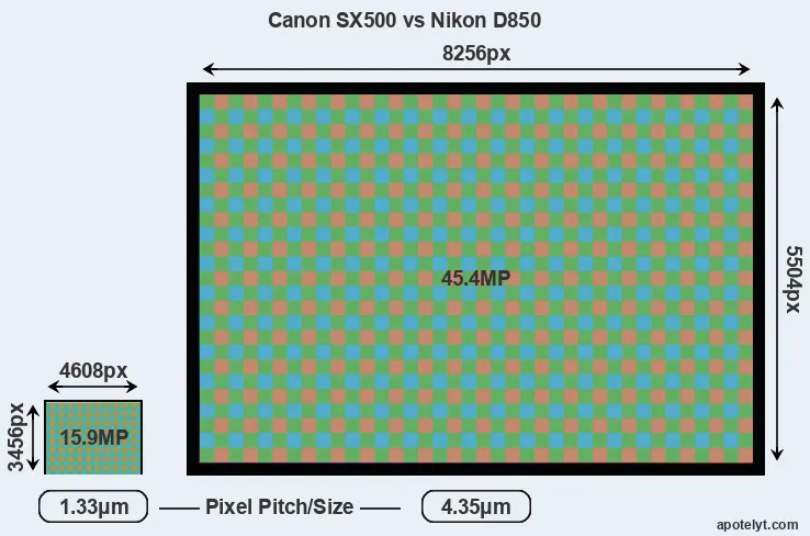 | Sensor Specs | Canon SX500 | Nikon D850 |