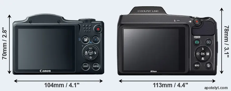 | Screen Specs | Canon SX500 | Nikon L840 |