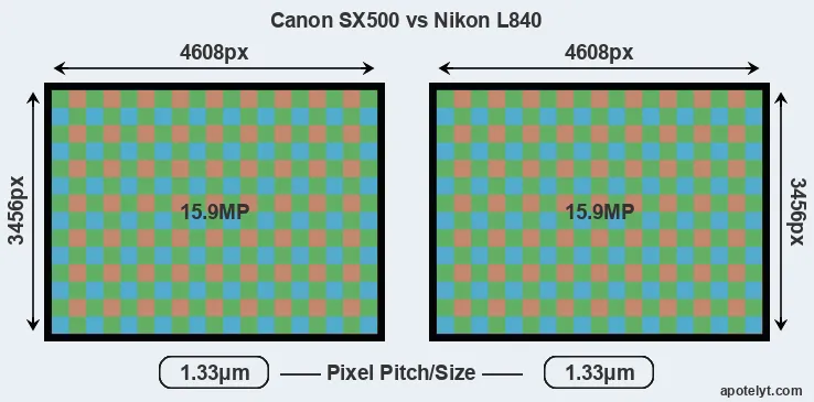 | Sensor Specs | Canon SX500 | Nikon L840 |