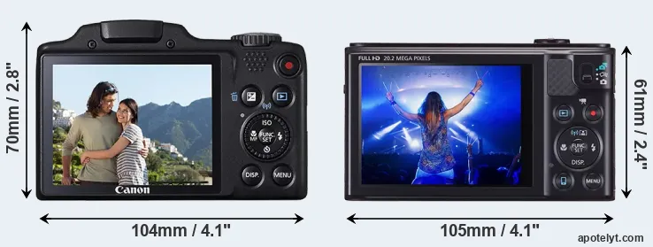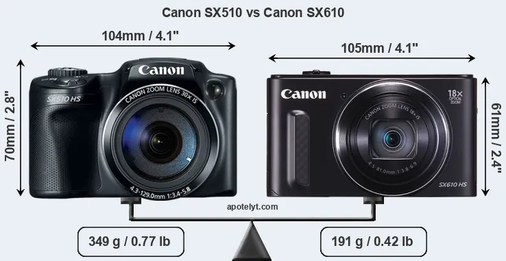 Size Canon SX510 vs Canon SX610