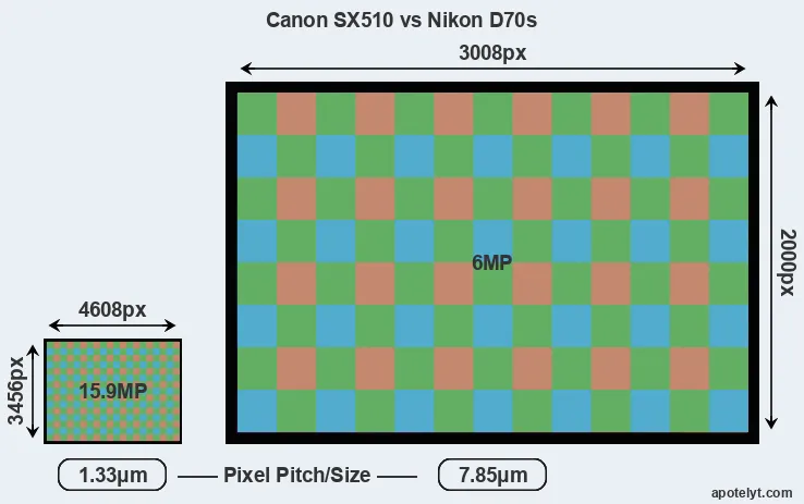 | Sensor Specs | Canon SX510 | Nikon D70s |