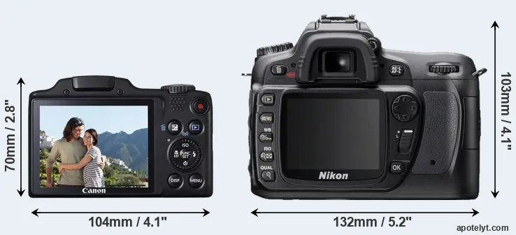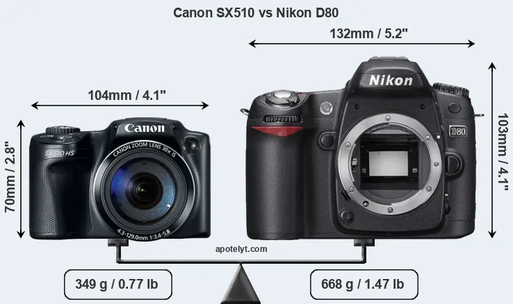Size Canon SX510 vs Nikon D80