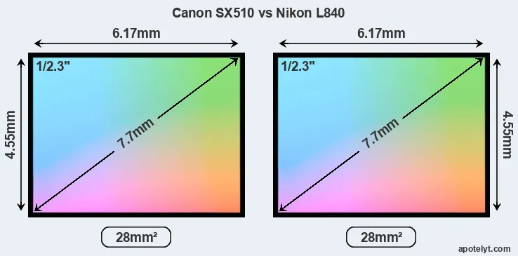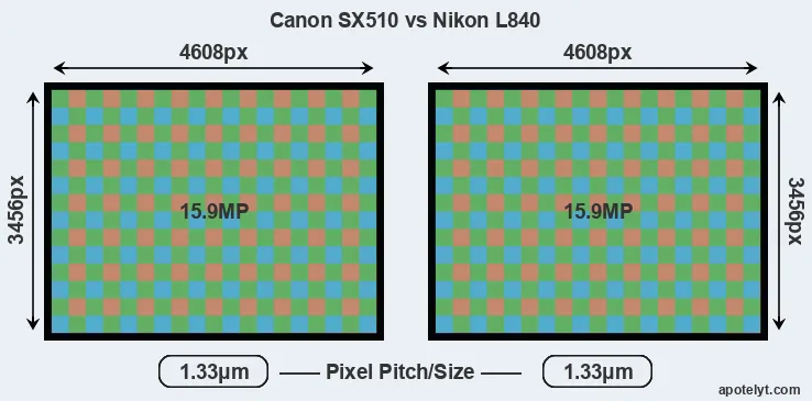 | Sensor Specs | Canon SX510 | Nikon L840 |