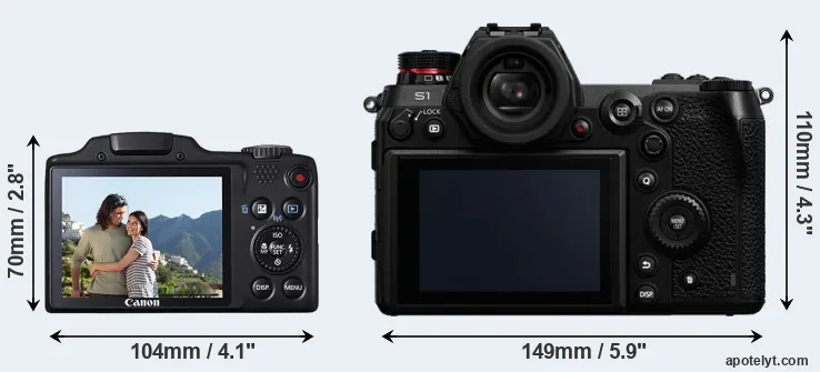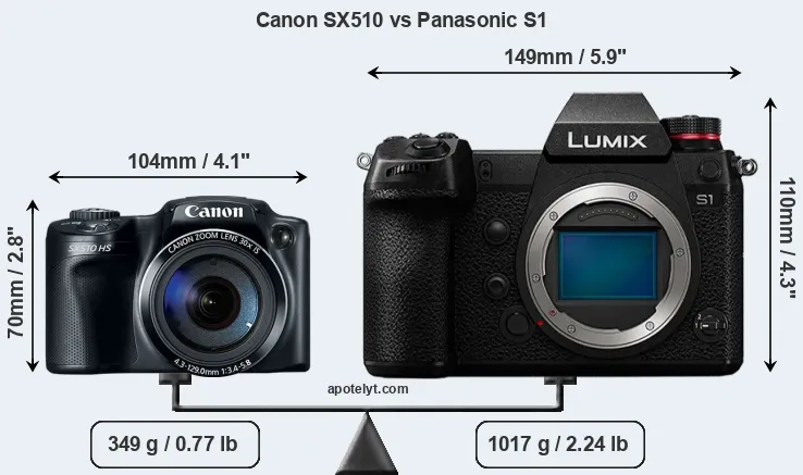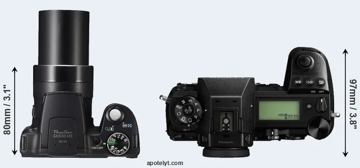 If the front view area (width x height) of the cameras is taken as an aggregate measure of their size, the Panasonic S1 is considerably larger (125 percent) than the Canon SX510. It is noteworthy in this context that the S1 is splash and dust-proof, while the SX510 does not feature any corresponding weather-sealing.