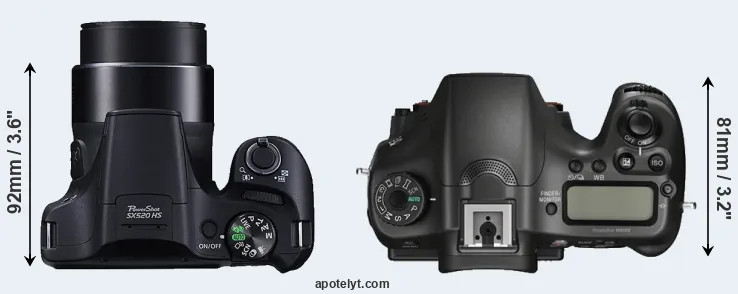 Going beyond this snapshot of core features and characteristics, what are the differences between the Canon PowerShot SX520 HS and the Sony Alpha SLT-A68? Which one should you buy? Read on to find out how these two cameras compare with respect to their body size, their imaging sensors, their shooting features, their input-output connections, and their reception by expert reviewers.