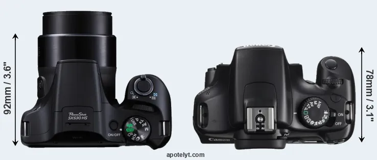The Canon PowerShot SX530 HS and the Canon EOS Rebel T3 (labelled Canon 1100D in some countries) are two digital cameras that were officially introduced, respectively, in January 2015 and February 2011. The SX530 is a fixed lens compact, while the T3 is a DSLR. The cameras are based on a 1/2.3-inch (SX530) and an APS-C (T3) sensor. The SX530 has a resolution of 15.9 megapixels, whereas the T3 provides 12.2 MP.