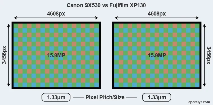 | Sensor Specs | Canon SX530 | Fujifilm XP130 |