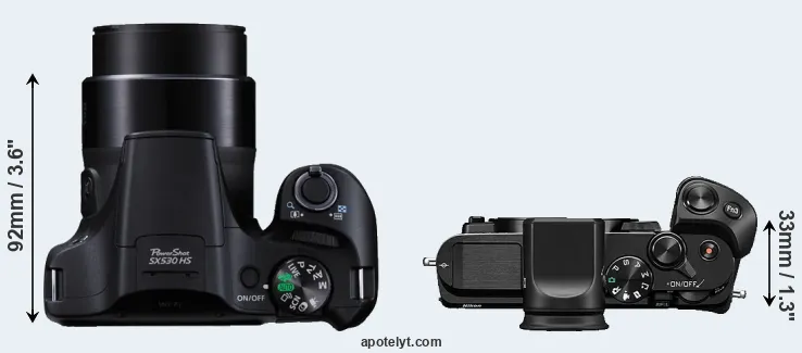 | Body Specs | Canon SX530 | Nikon 1 V3 |