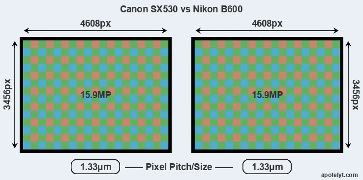| Sensor Specs | Canon SX530 | Nikon B600 |