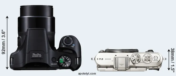 The above size and weight comparisons are to some extent incomplete and possibly misleading, as the SX530 has a lens built in, whereas the E-PL8 is an interchangeable lens camera that requires a separate lens. Attaching the latter will add extra weight and bulk to the setup. You can compare the optics available for the E-PL8 and their specifications in the Micro Four Thirds Lens Catalog.