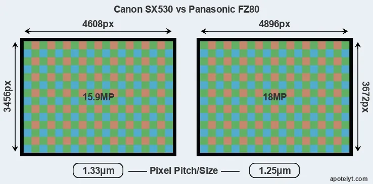 | Sensor Specs | Canon SX530 | Panasonic FZ80 |