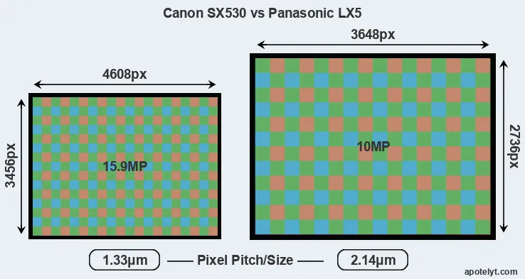 | Sensor Specs | Canon SX530 | Panasonic LX5 |