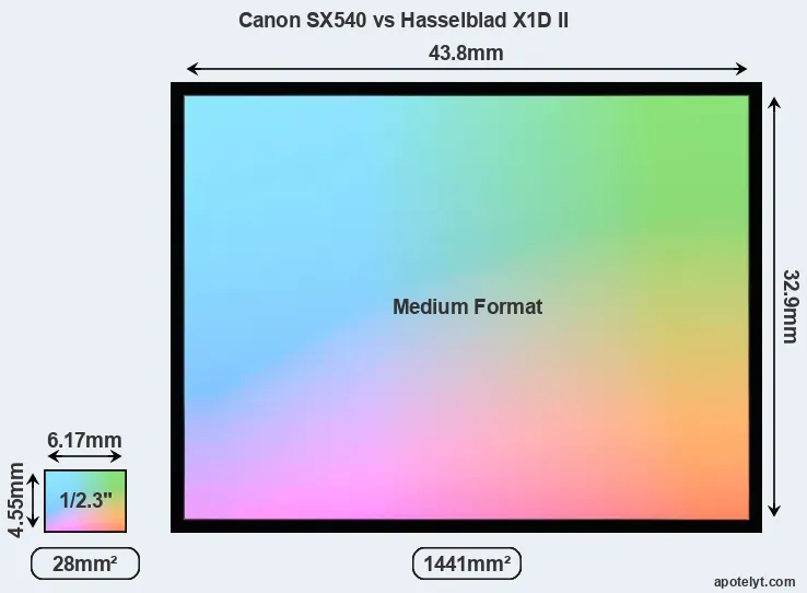 | Sensor Specs | Canon SX540 | Hasselblad X1D II |