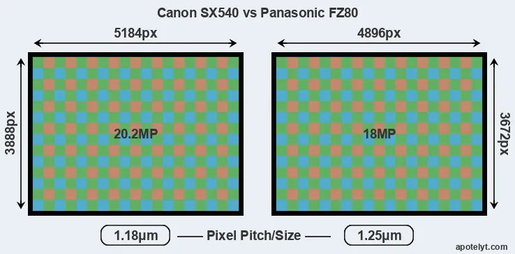 | Sensor Specs | Canon SX540 | Panasonic FZ80 |