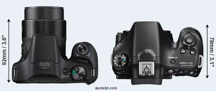 Going beyond this snapshot of core features and characteristics, what are the differences between the Canon PowerShot SX540 HS and the Sony Alpha SLT-A58? Which one should you buy? Read on to find out how these two cameras compare with respect to their body size, their imaging sensors, their shooting features, their input-output connections, and their reception by expert reviewers.