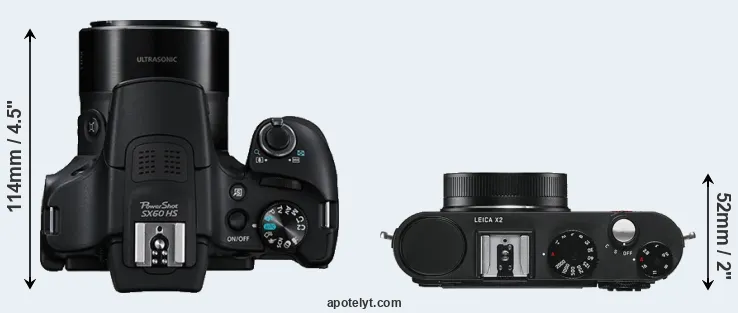 Going beyond this snapshot of core features and characteristics, what are the differences between the Canon PowerShot SX60 HS and the Leica X2? Which one should you buy? Read on to find out how these two cameras compare with respect to their body size, their imaging sensors, their shooting features, their input-output connections, and their reception by expert reviewers.
