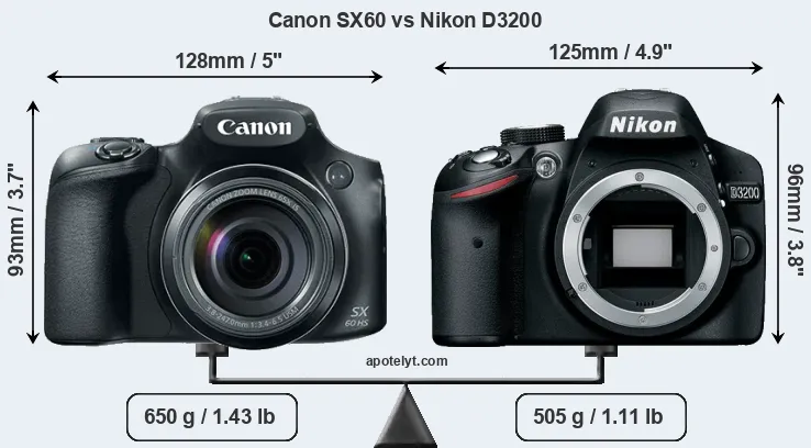 | Body Specs | Canon SX60 | Nikon D3200 |