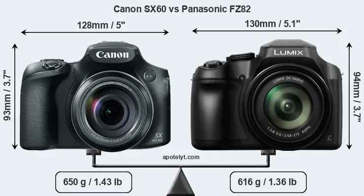 | Body Specs | Canon SX60 | Panasonic FZ82 |