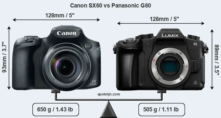 | Body Specs | Canon SX60 | Panasonic G80 |