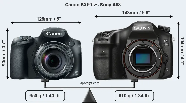 | Body Specs | Canon SX60 | Sony A68 |