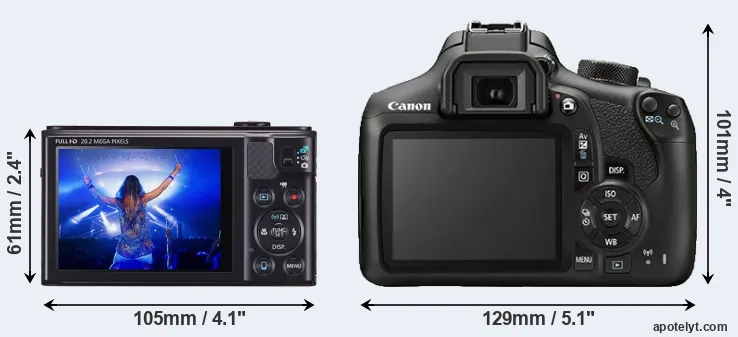 The Canon PowerShot SX610 HS and the Canon EOS Rebel T6 (labelled Canon 1300D in some countries) are two digital cameras that were officially introduced, respectively, in January 2015 and March 2016. The SX610 is a fixed lens compact, while the T6 is a DSLR. The cameras are based on a 1/2.3-inch (SX610) and an APS-C (T6) sensor. The SX610 has a resolution of 20.2 megapixels, whereas the T6 provides 17.9 MP.