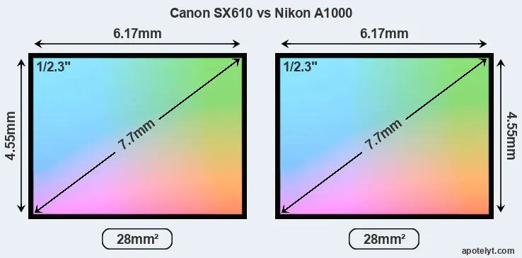 | Sensor Specs | Canon SX610 | Nikon A1000 |