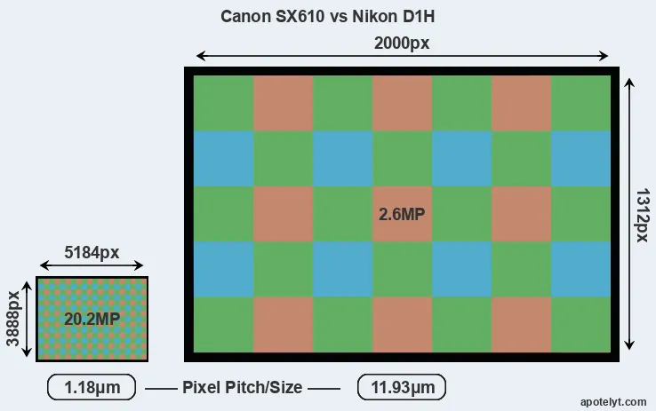 | Sensor Specs | Canon SX610 | Nikon D1H |