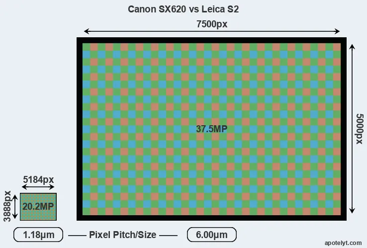 | Sensor Specs | Canon SX620 | Leica S2 |