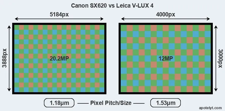 | Sensor Specs | Canon SX620 | Leica V-LUX 4 |