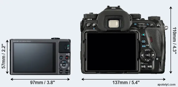 The above size and weight comparisons are to some extent incomplete and possibly misleading, as the SX620 has a lens built in, whereas the K-1 is an interchangeable lens camera that requires a separate lens. Attaching the latter will add extra weight and bulk to the setup.