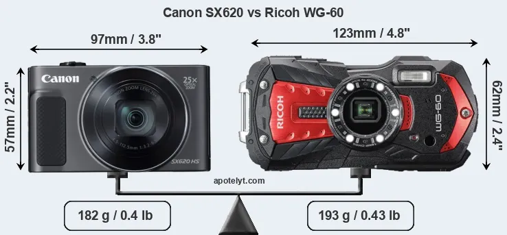 | Body Specs | Canon SX620 | Ricoh WG-60 |
