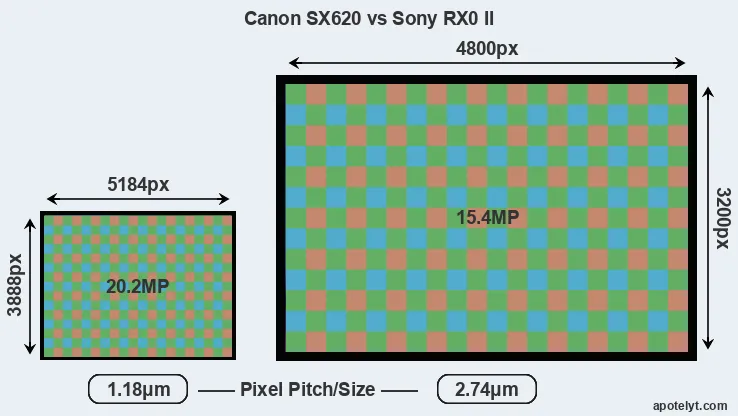 | Sensor Specs | Canon SX620 | Sony RX0 II |