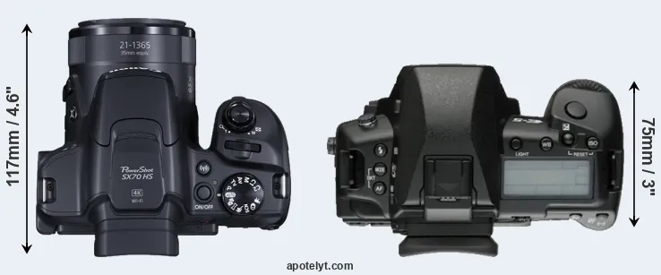 | 1. | Canon SX70 | 127 mm | 91 mm | 117 mm | 608 g | 325 | n | Sep 2018 | US$ 549 | amazon.com | |