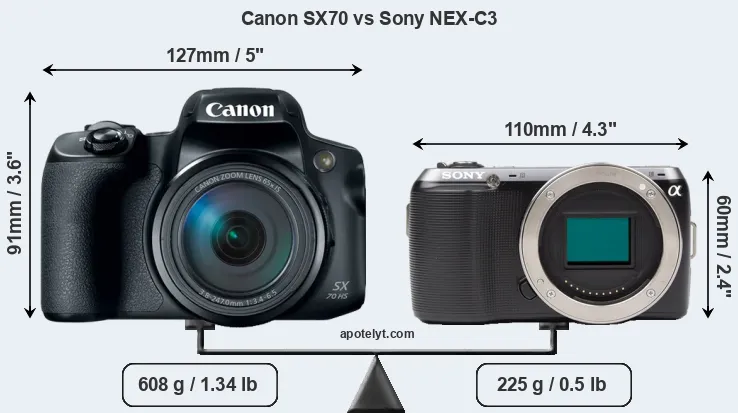 | Body Specs | Canon SX70 | Sony NEX-C3 |