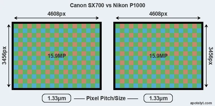 | Sensor Specs | Canon SX700 | Nikon P1000 |