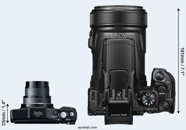 | Body Specs | Canon SX700 | Nikon P1000 |