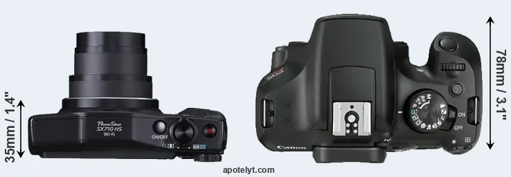 The Canon PowerShot SX710 HS and the Canon EOS Rebel T6 (labelled Canon 1300D in some countries) are two digital cameras that were revealed to the public, respectively, in January 2015 and March 2016. The SX710 is a fixed lens compact, while the T6 is a DSLR. The cameras are based on a 1/2.3-inch (SX710) and an APS-C (T6) sensor. The SX710 has a resolution of 20.2 megapixels, whereas the T6 provides 17.9 MP.