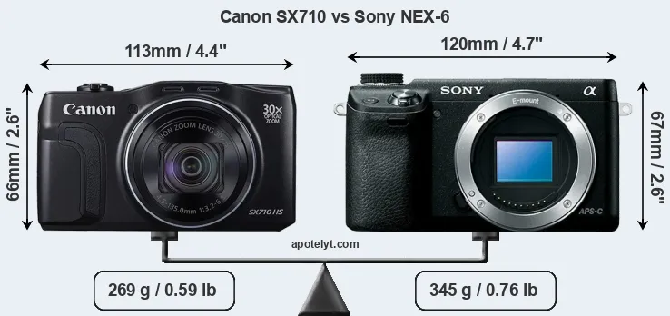| Body Specs | Canon SX710 | Sony NEX-6 |