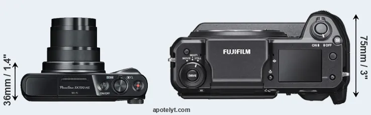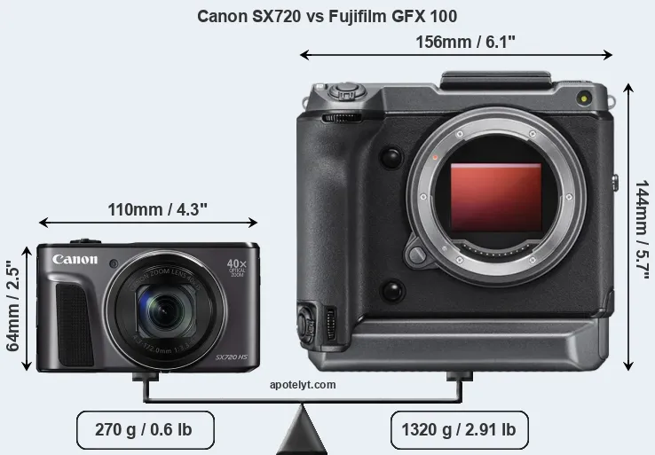 | Body Specs | Canon SX720 | Fujifilm GFX 100 |